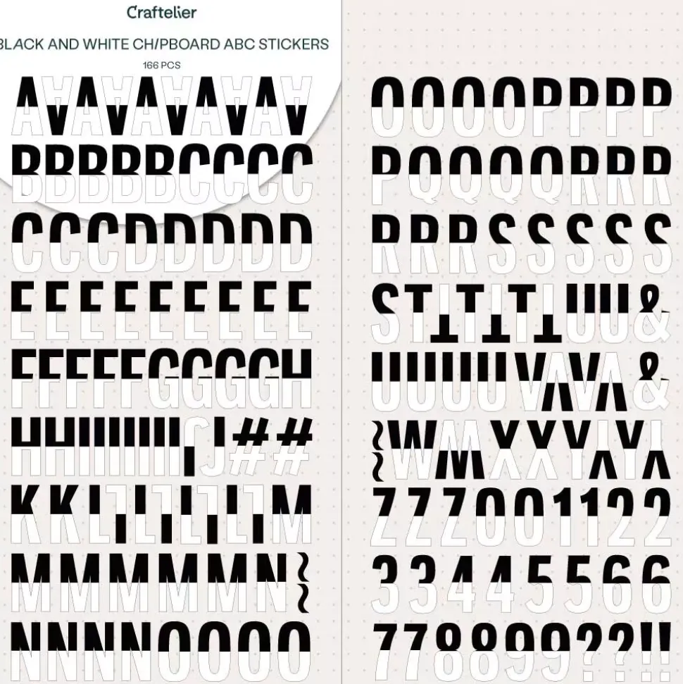 Abecedario Adhesivo Chipboard Blanco y Negro Craftelier