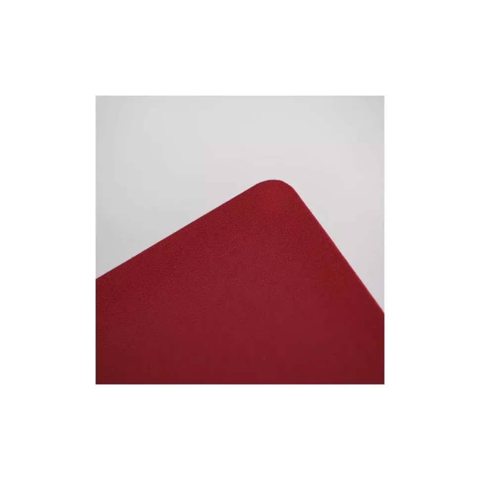 - Tiene un elegante color rojo cereza y un interior con papel de textura lino de color blanco.