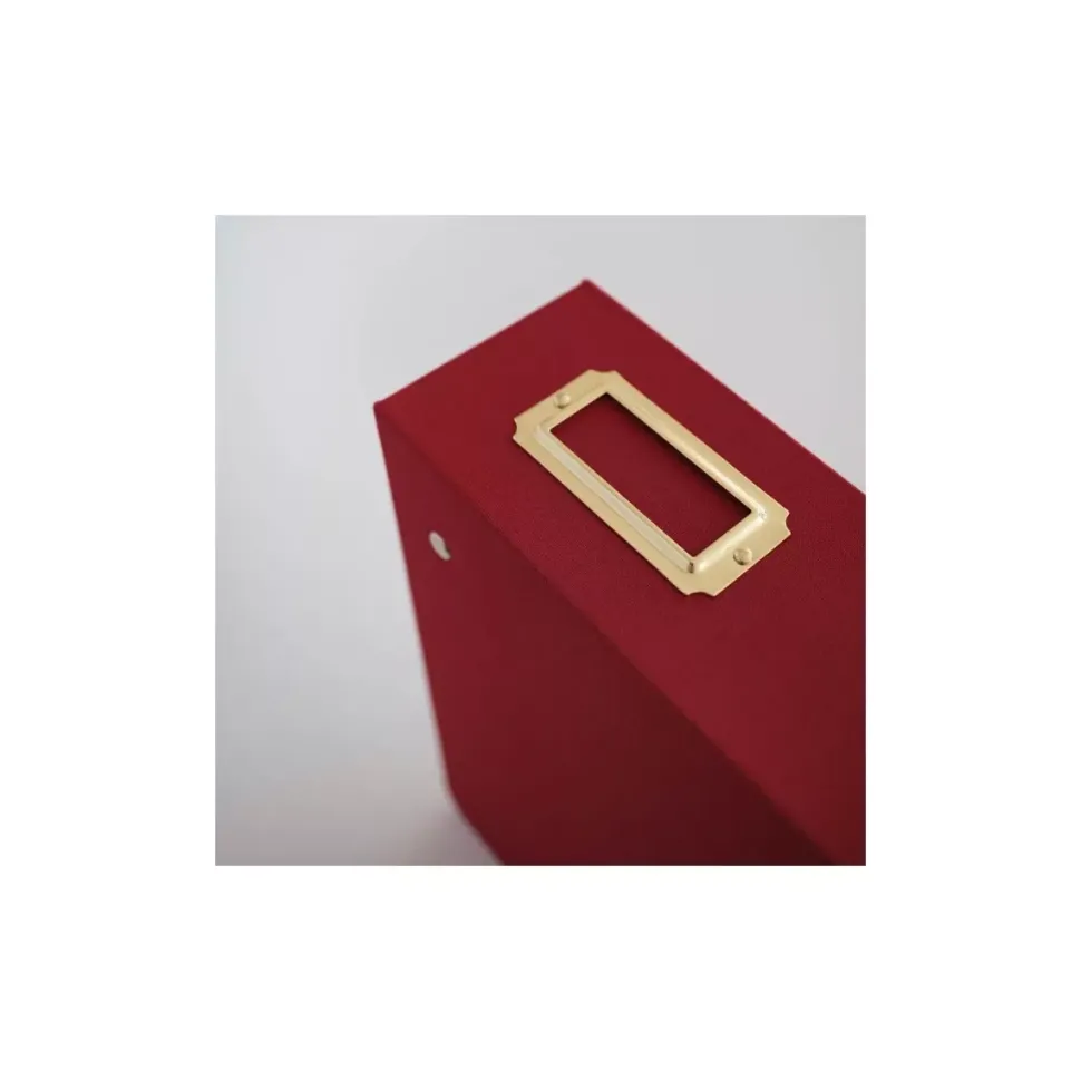 - Incluye esquinas redondeadas y un portaetiquetas dorado en el lomo para ponerle el título o la fecha.