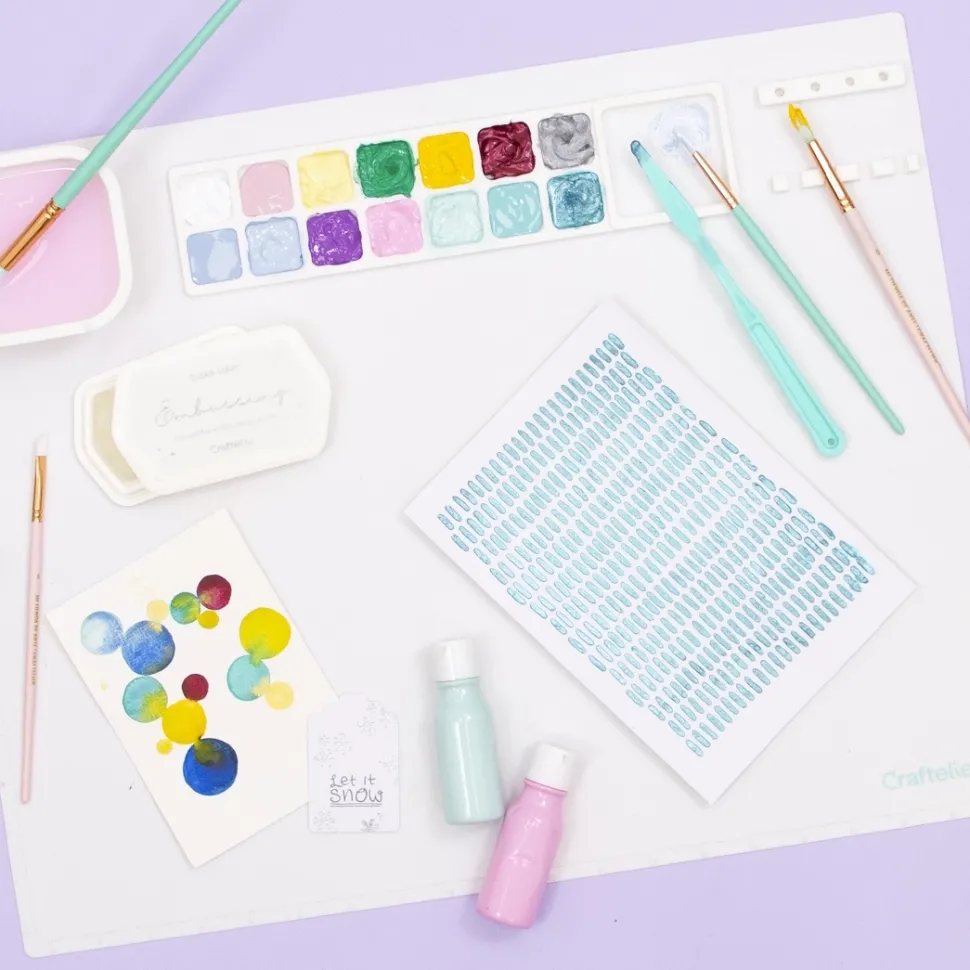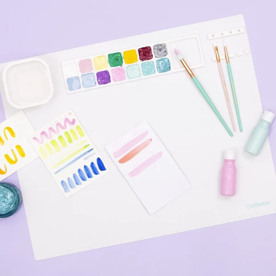 - Base de silicona blanca mate para usar como superficie de trabajo en tus proyectos mixed media y proteger tu superficie de trabajo.