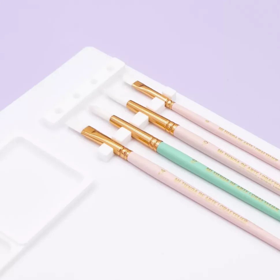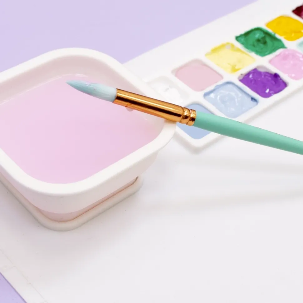 - En un lateral tiene unos surcos en relieve para depositar los productos, soportes para pinceles y un pequeño recipiente plegable para poner agua.