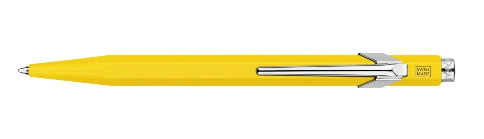 - Bolígrafo con el diseño emblemático Caran d’Ache, de cuerpo metálico hexagonal y detalles metálicos en cromo brillante.
