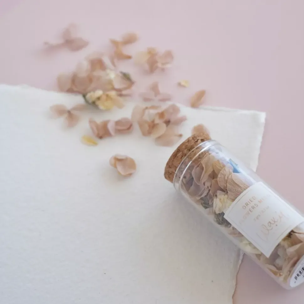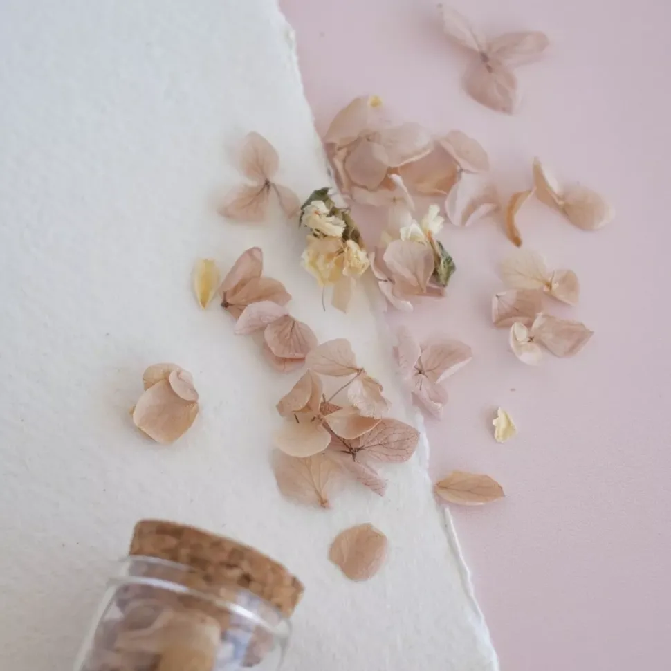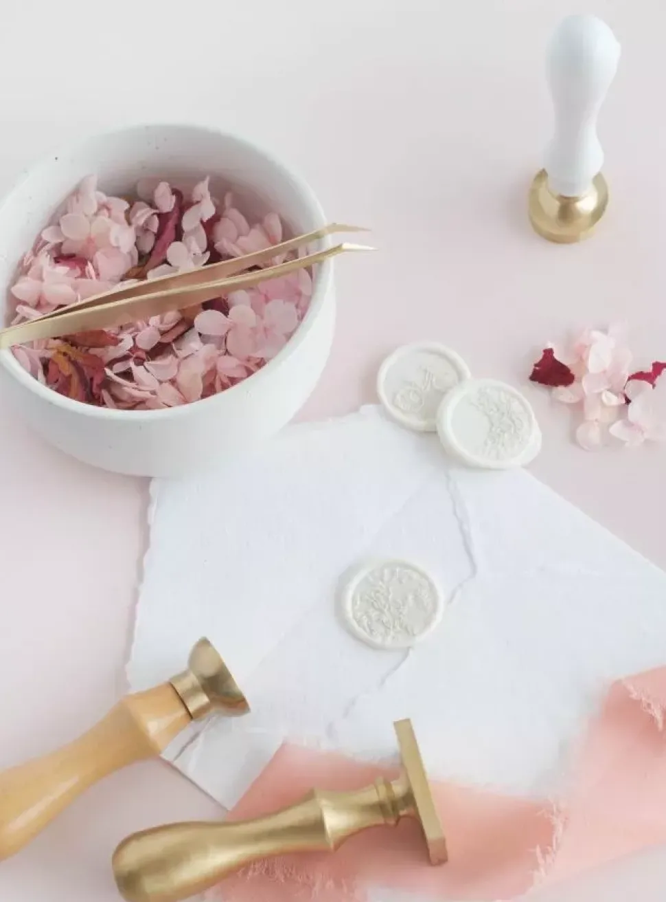 - Flores secas en tonos rosas y beige para dar un toque único a tus lacres.