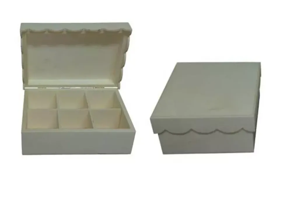 Caja con tapa con ondas con cuatro compartimentos interiores para guardar infusiones.