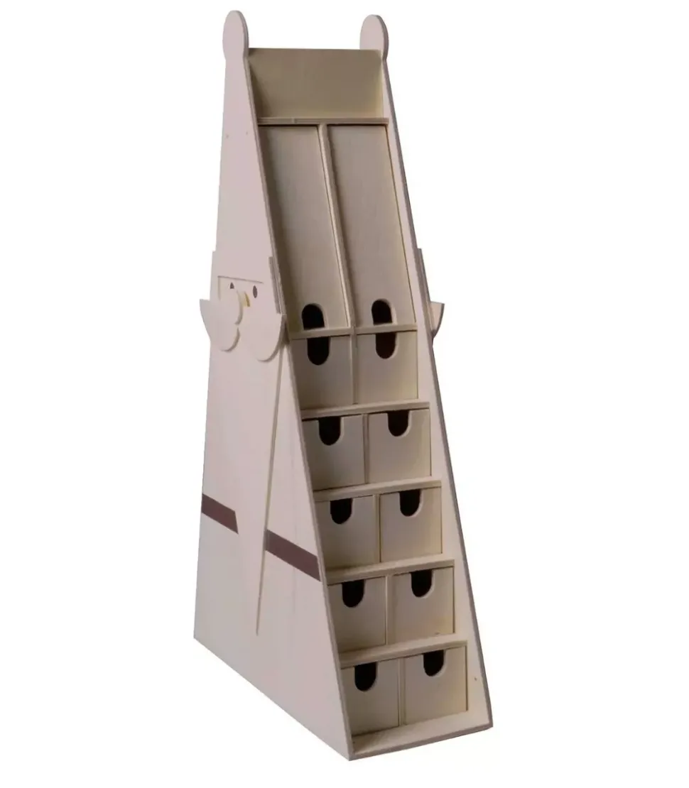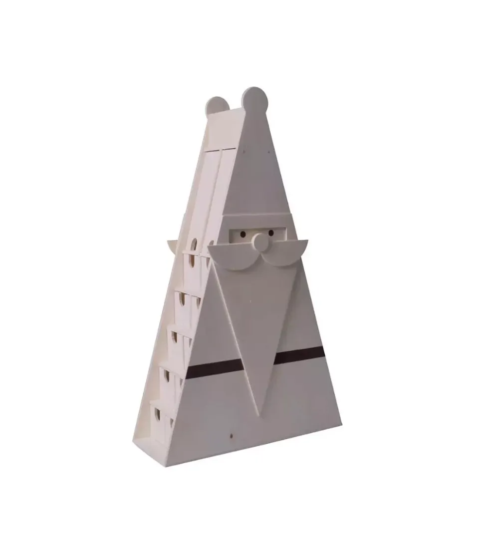 - Calendario de Adviento de madera en forma de Papá Noel de forma triangular.