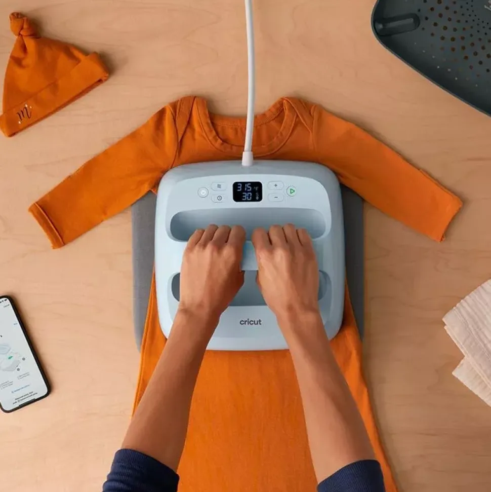 Combina la velocidad de una prensa térmica, la comodidad de una plancha y la simplicidad de la aplicación Cricut Heat, una aplicación gratuita, que te ayudará en el proceso de elaboración y prensado de tus diseños.