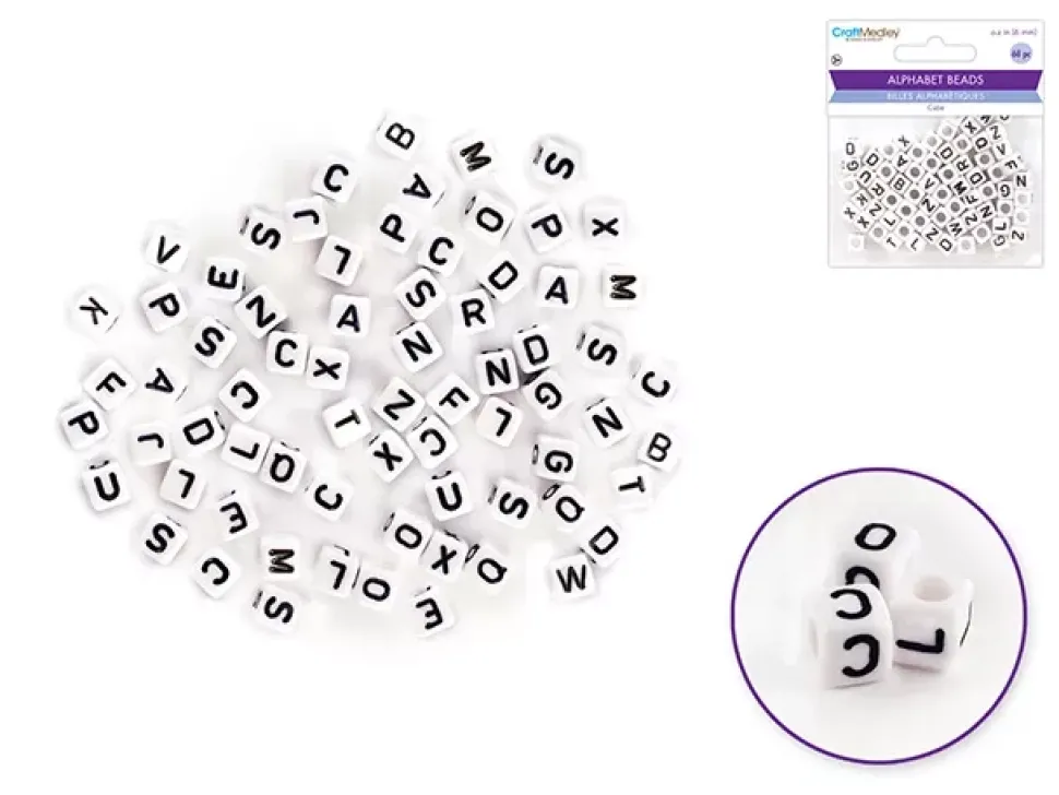 Cuentas Blancas con Abecedario en Negro MultiCraft 6mm