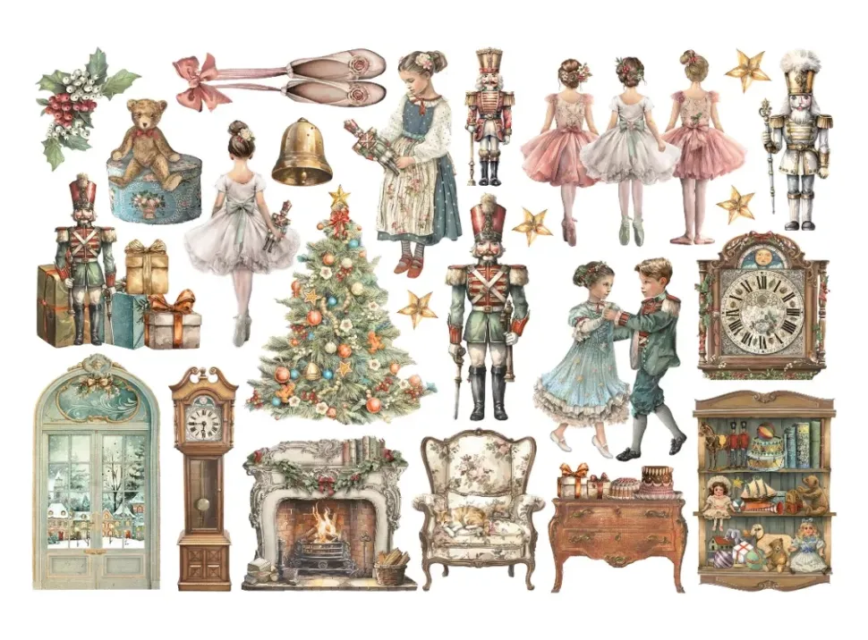 - Contiene ilustraciones de la colección The Nutcracker de Stamperia.