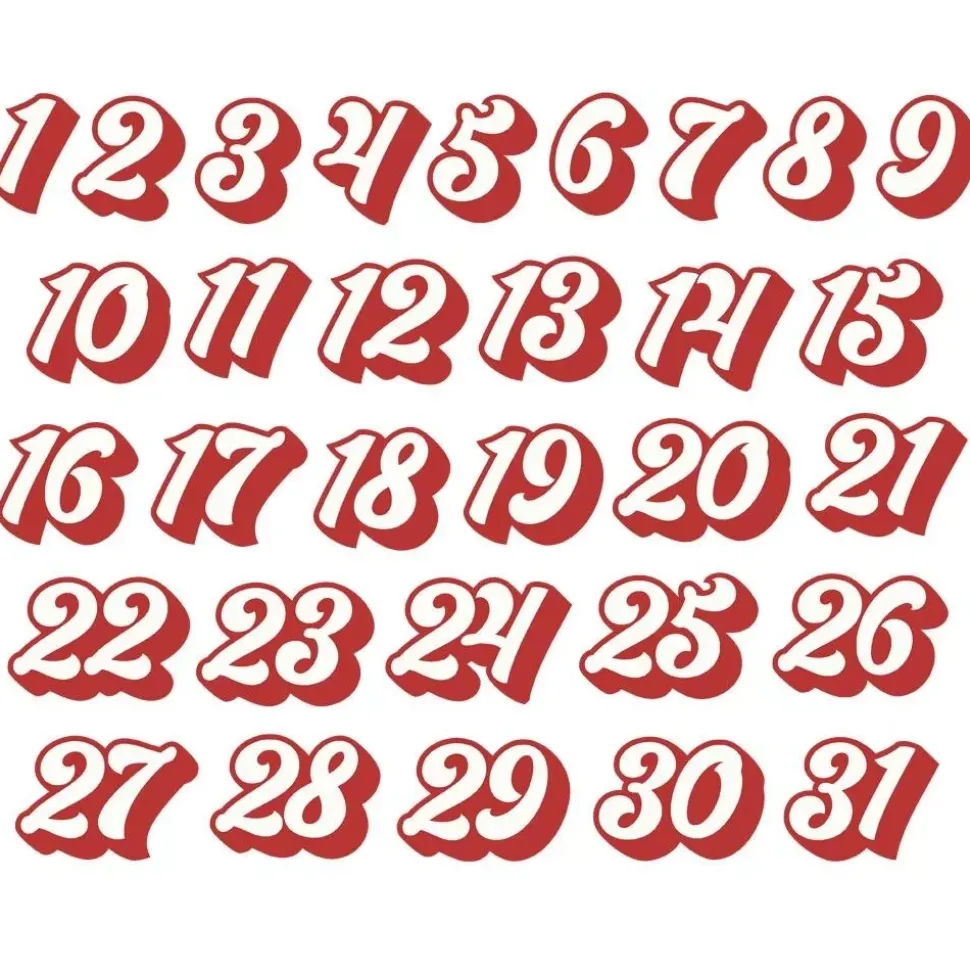 - Incluye diseños de todos los números del calendario, el símbolo # e ilustraciones de acebo.