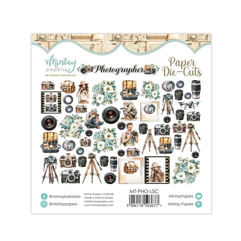 Photographer, la última colección de scrapbooking de Mintay, es una colección atrevida y ecléctica que captura la pasión por la fotografía de una manera única. Su estética, más oscura y un poco grunge, combina a la perfección con elementos vintage sutiles y diseños modernos.