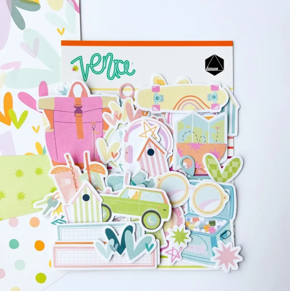 - Die-cuts de diseños diferentes que coordinan con la colección Venice.