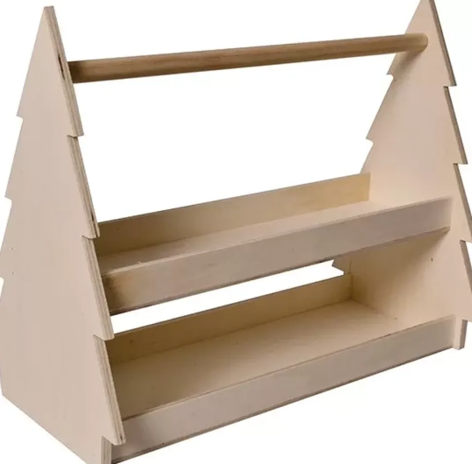 - Los extremos de la estantería están decorados con una figura en forma de Árbol de Navidad.