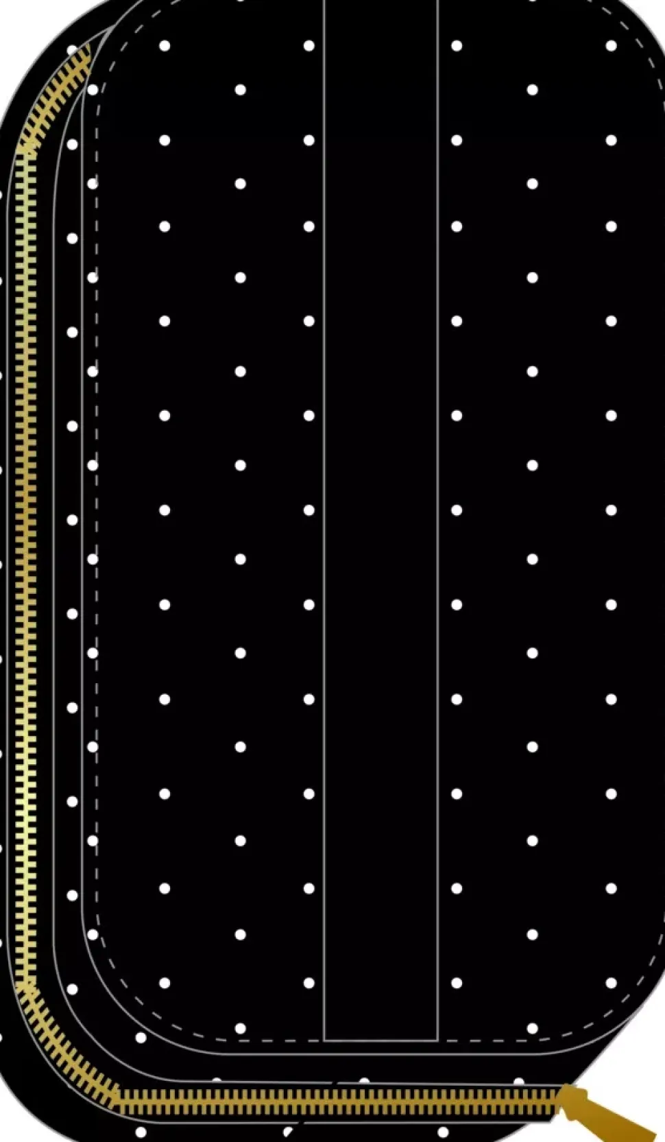 - Elegante diseño con un bonito estampado de puntitos blancos sobre un fondo negro y cremallera en color dorado.