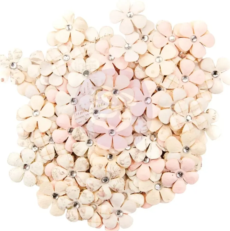 Maravillosas flores para agregar un pequeño y bonito diseño para cualquier proyecto de tarjetería, scrapbooking, mixed media, smashbook, Lay Outs, etc. Las flores son de color rosa empolvado con estampados de cuadros o tipografias vintage y una pequeña gema en el centro.