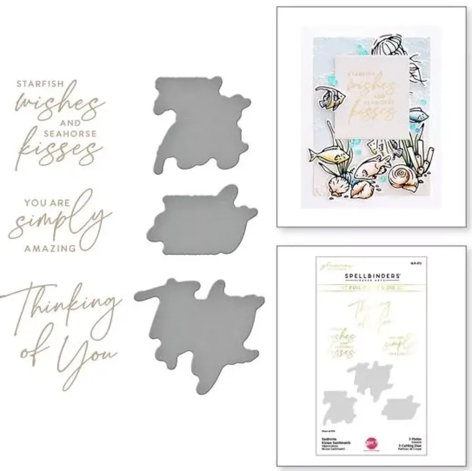 Glimmer Hot Foil Plates + troqueles Kisses Sentiments Seahorse Spellbinders