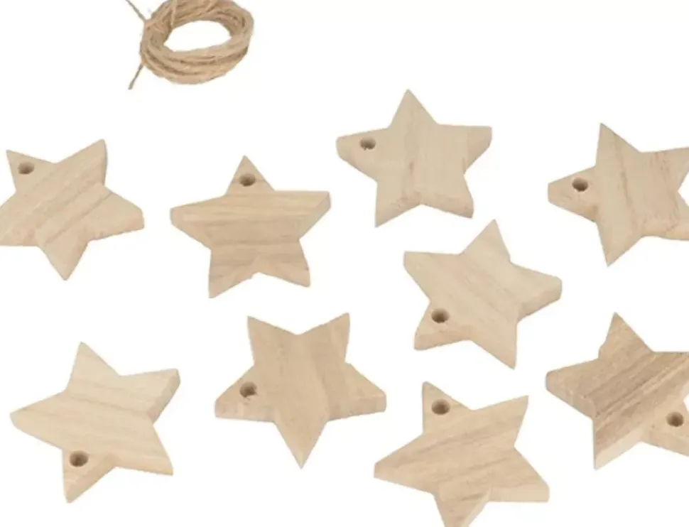 - Guirnalda de madera a base de 10 piezas con el diseño de estrellas.