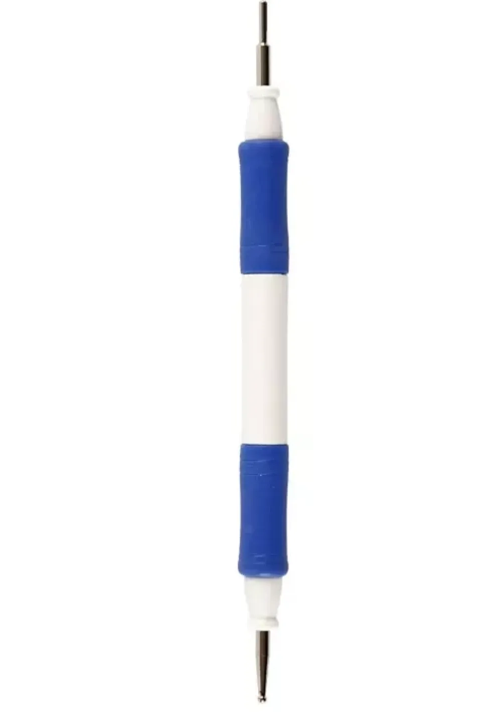 - Por un lado, cuenta con una punta para hacer quilling, y por el otro, con una bola de repujado.
