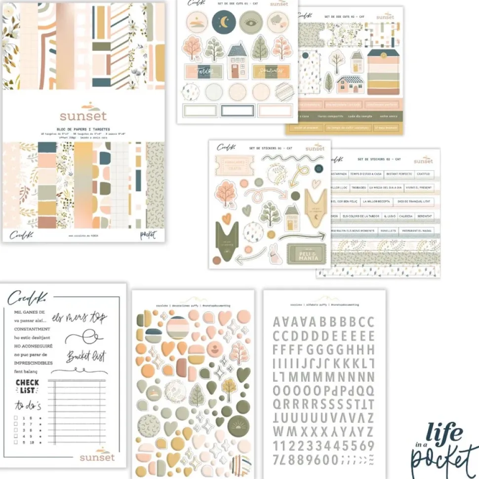 ¡Ya tenemos aquí Sunset, el último kit trimestral de Cocoloko para el 2024! Este kit posee una paleta de color en tonos cálidos, como marrón, ocre, verde salvia, o salmón, con toques de turquesa oscuro, perfectos para la época de otoño/invierno. En sus diseños podemos encontrar tanto patrones de formas geométricas como motivos vegetales, creando un conjunto ideal para usar en cualquier ocasión o documentar tu día a día en tu project life. ¡Descubre ya Sunset y corre a por ella!