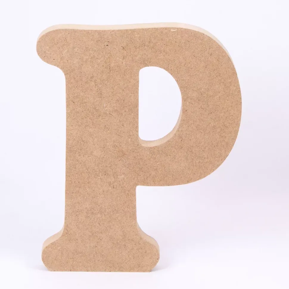 Letra en DM tipo cooper que permite trabajarse y decorarse con diversas manualidades: decoupage, pintura, tela, etc.