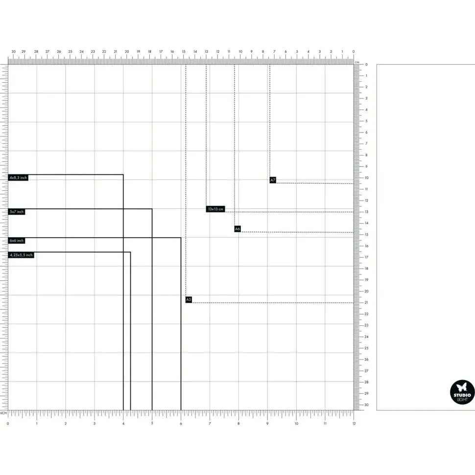 - Reglas con cuadrícula en centímetros y pulgadas y tamaños de tarjetas estándar.