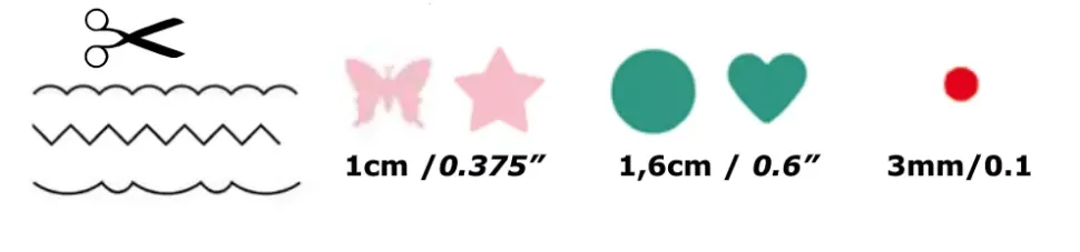 4 perforadoras para papel de max. grosor 90-220gr con motivos diferentes: círculo y corazón: tamaño de troquel aprox. 1cm y mariposa y estrella: tamaño de troquel aprox. 1,6cm
