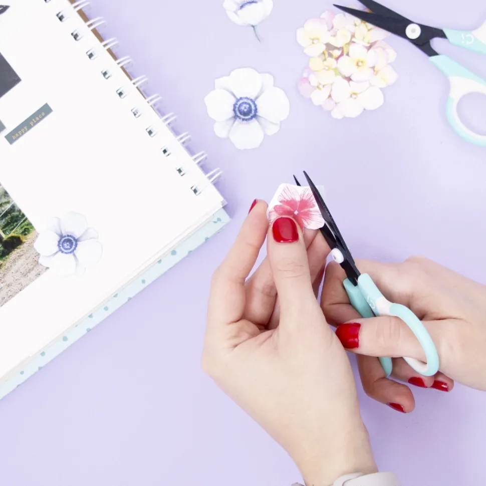 - Unas tijeras cómodas y ligeras para poder llevar siempre contigo en tu estuche de manualidades. Ideales para cortar todo tipo de papeles, fotografías, cintas y papeles.