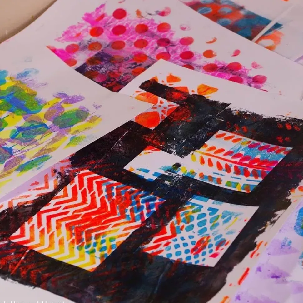 - ¡Las posibilidades son infinitas! Crea máscaras con tus propios troqueles superponiendo varios diseños sobre un mismo papel o mezcla varios colores en tu Gelli Plate. Si te gustan los trabajos creativos, crear tus propios fondos y el Mixed Media en general lo pasarás en grande con esta placa de impresión.