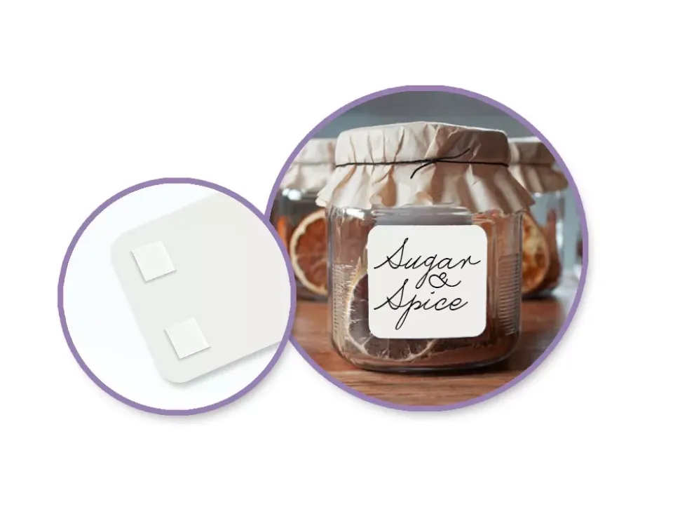 - Pequeños cuadros adhesivos permanentes por las dos caras.