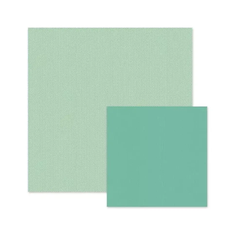 Una cara texturizada en color verde hieba claro y el reverso turquesa.