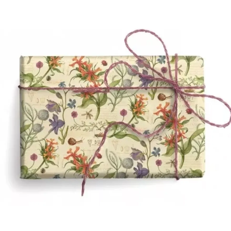 - Papel de alta gama impreso con estampado de flores sobre un fondo beige.