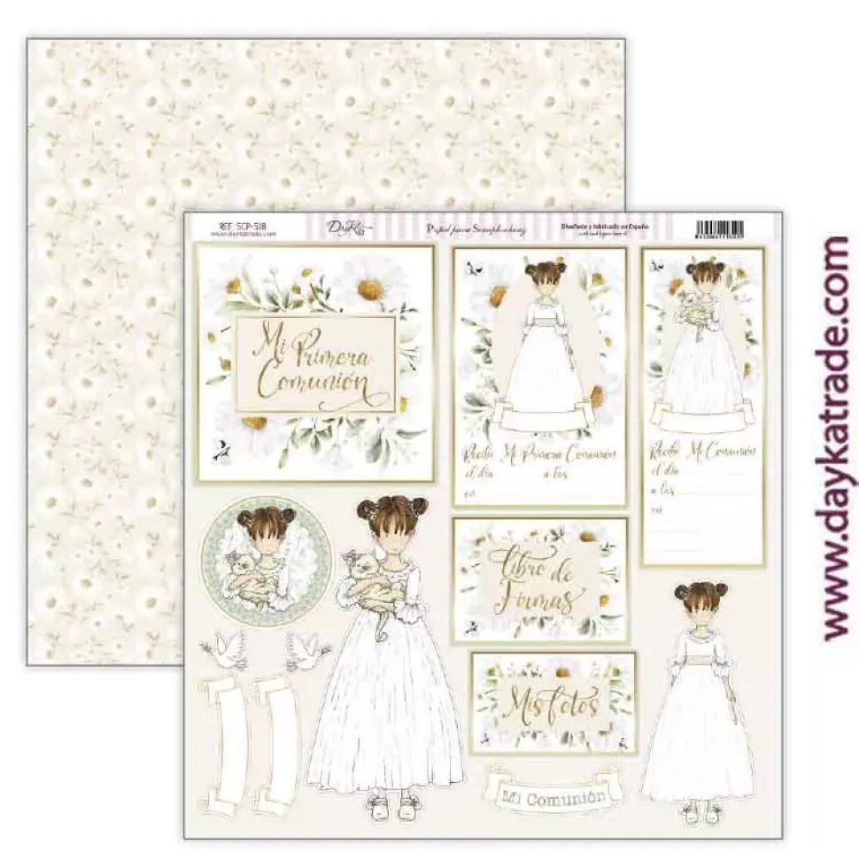 Papel SCP-518 Mi Comunión Margaritas Bendiciones Niña Dayka 30x30cm