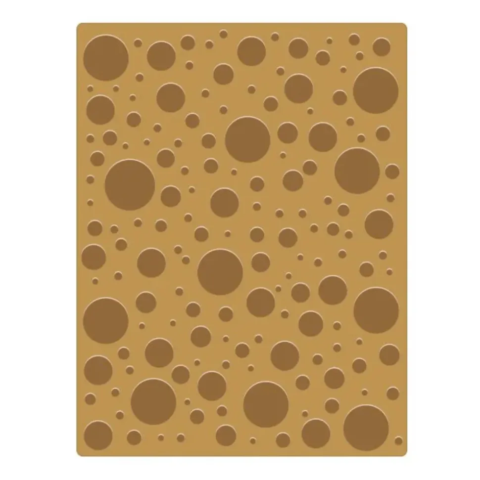 - Placa de estampación en caliente con un diseño círculos grandes y pequeños que simulan al confetti.