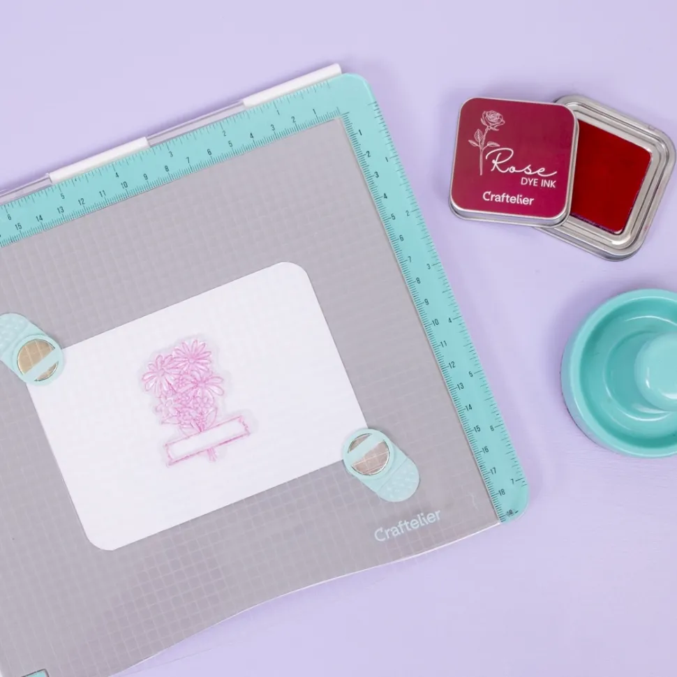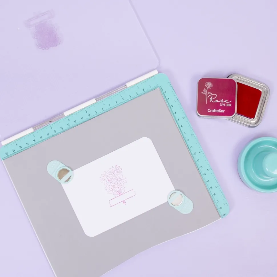 Ideal para utilizar sellos a capas en tarjetas o invitaciones y para estampaciones repetitivas donde queremos siempre cuadrar el mismo dibujo en el mismo sitio.
