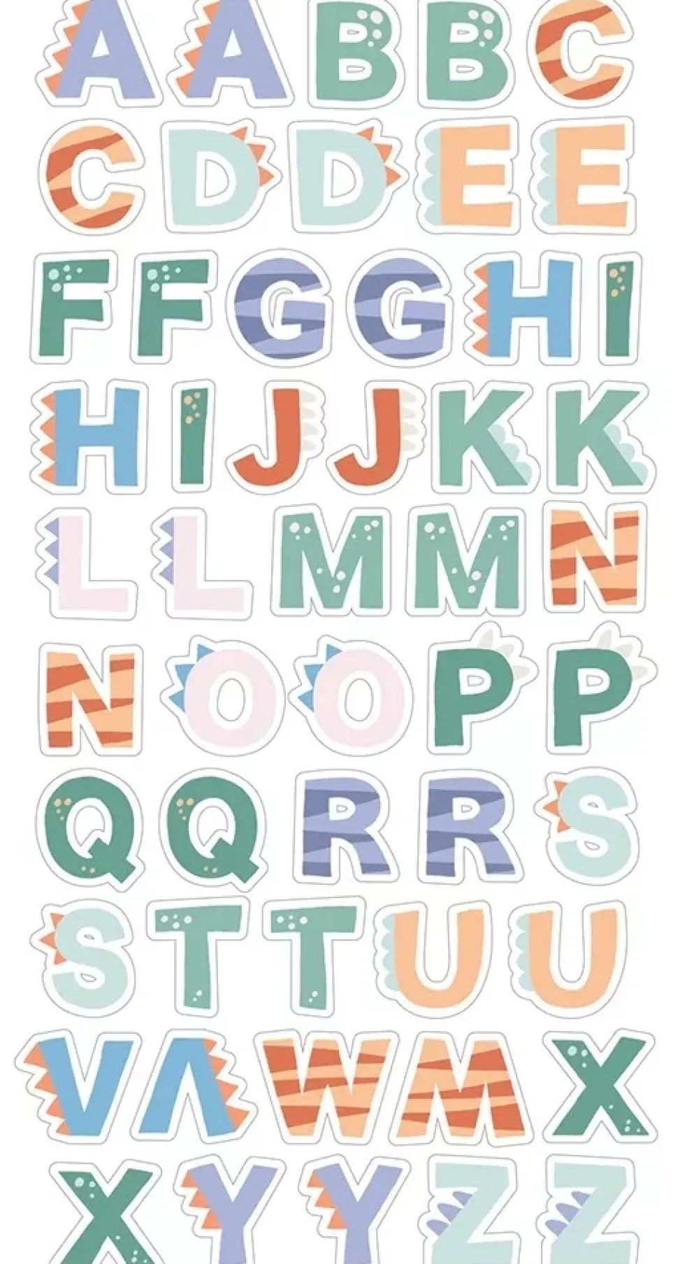 - Incluye las letras del abecedario con diseño de dinosaurio.