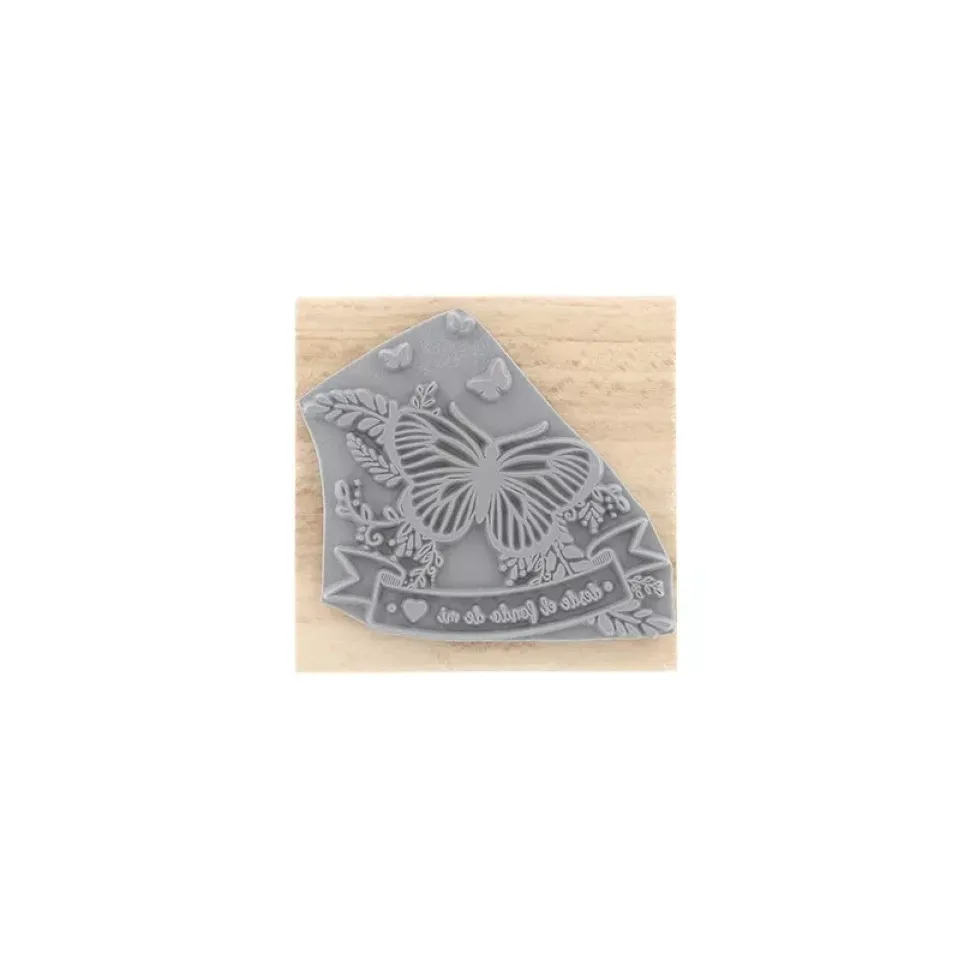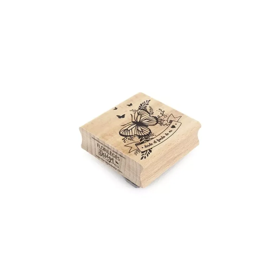 - Un sello con mariposas, hojas y ramas y un banner ocn el texto desde el fondo de mi ♥.