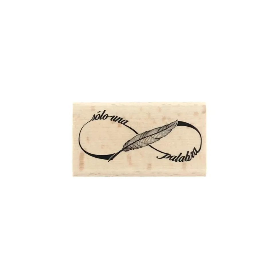 - Un sello con forma de infinito con una pluma y la frase sólo una palabra.