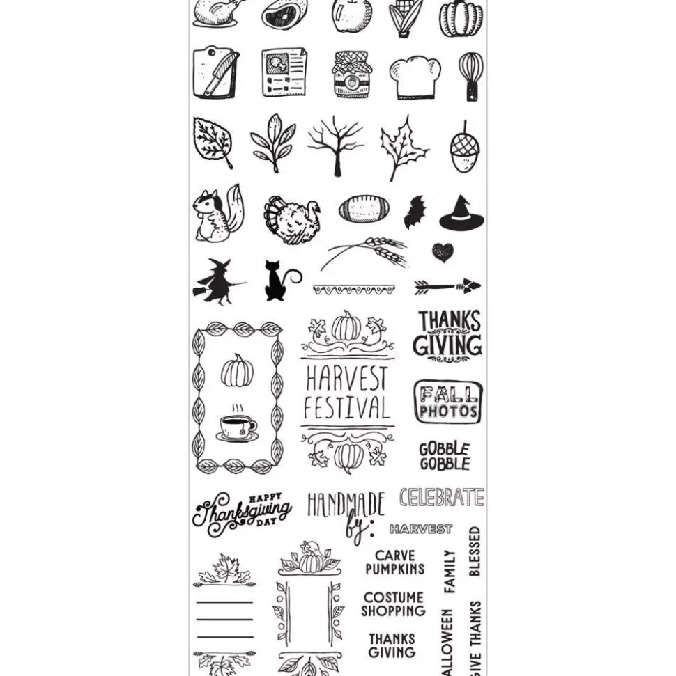 Sellos transparentes de temática otoñal. Iconos y dibujos para todo tipo de ocasión. Ideales, por su tamaño, para incluir en agendas y otros espacios pequeños.