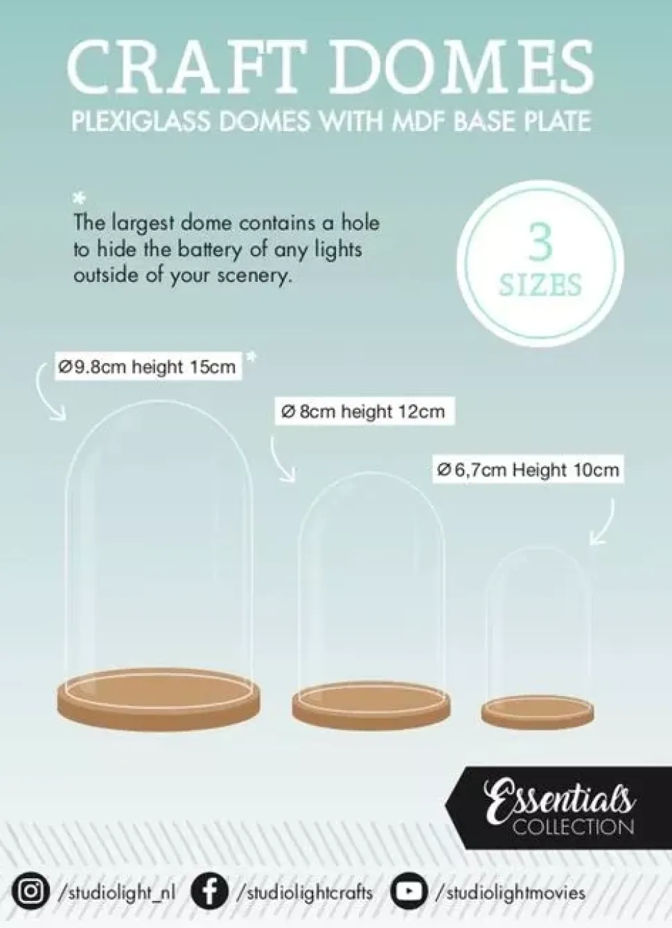 - Incluye 3 cúpulas de diferentes tamaños con base de MDF.