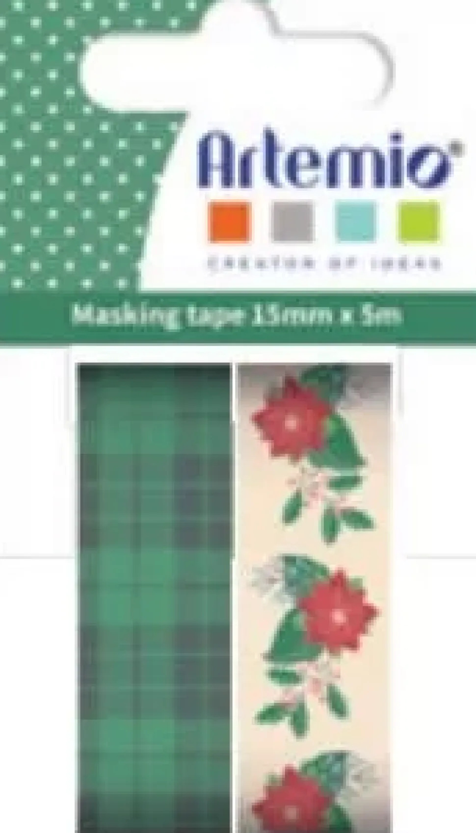 Cintas adhesivas decoradas con motivo floral y patrón de cuadros en tonos verdes.