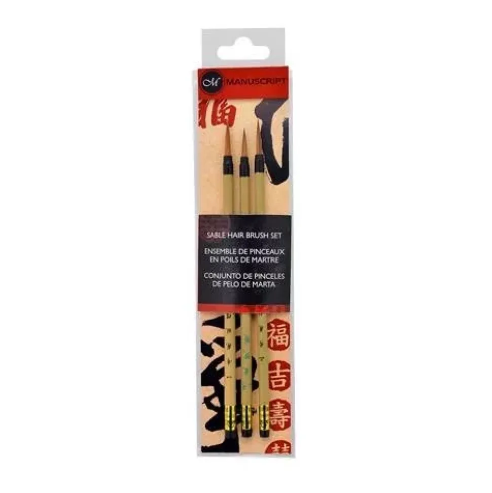 - Conjunto de tres pinceles de caligrafía especializado formado de auténtico pelo de Marta.