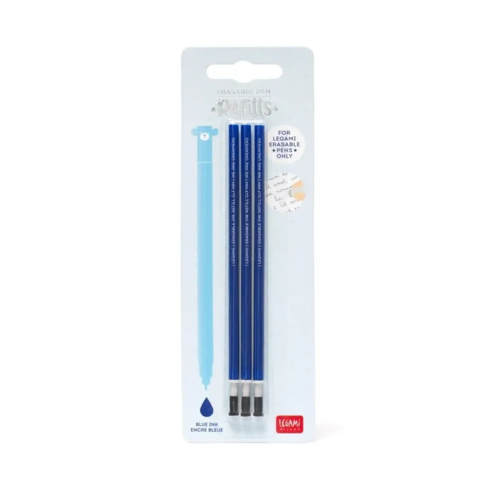 Set de 3 recambios Bolígrafo de gel borrable Erasable Pen Azul Legami