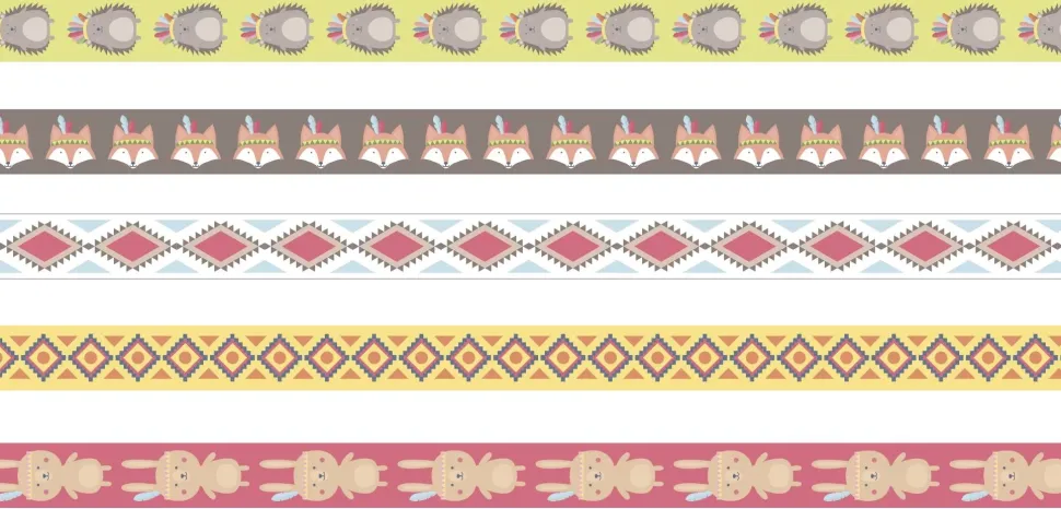 - Washi tapes con motivos de chevron, triángulos, atrapasueños, plumas y tipis.