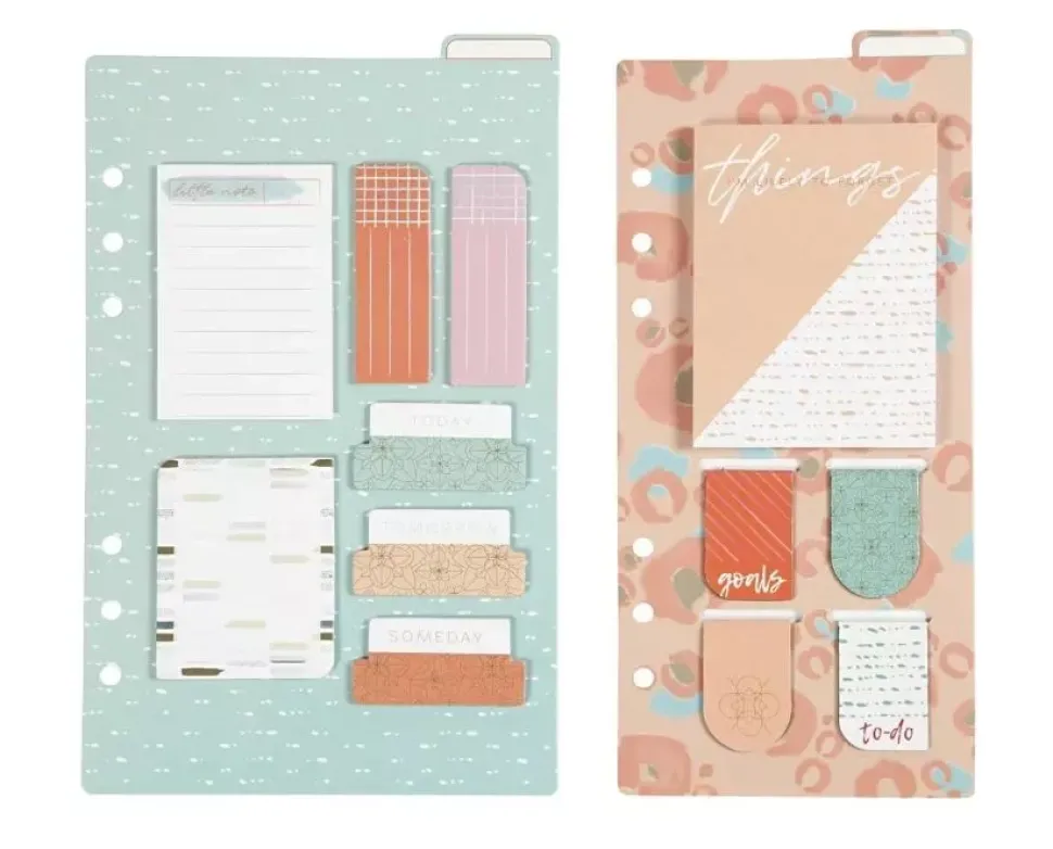 - Blocs de notas adhesivos de varios tamaños y cuatro puntos de libro magnéticos.