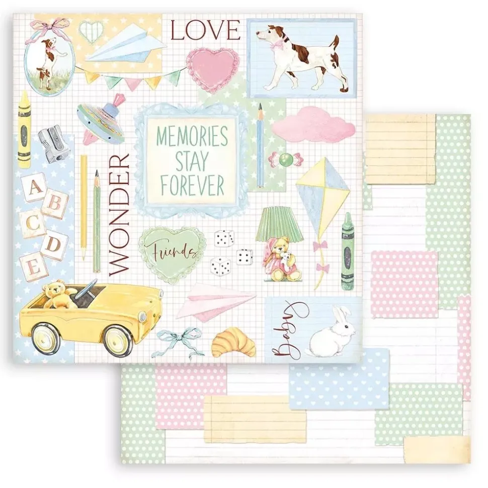 Descubre la nueva colección de scrapbooking de Stamperia, DayDream. Inspirada en los más peques de la casa incluyendo ilustraciones de ositos de peluche, caballos de madera, triciclos, juguetes y nuevos patrones, todo ello diseñado en tonos pastel. Además, incluye diferentes elementos para que no te falte ni un detalle a tus proyectos de scrap. ¡Descúbrela!