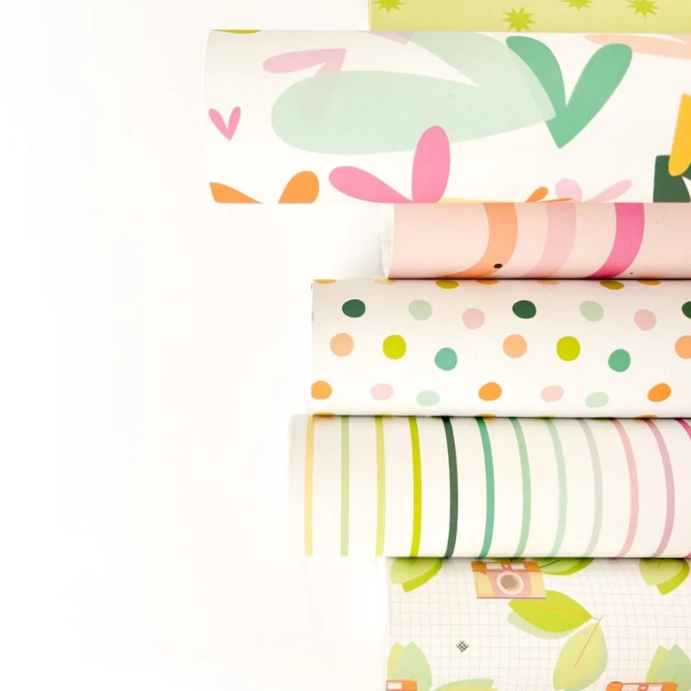 - Contiene 18 papeles: 6 estampados a doble cara y 12 estampados a una cara.