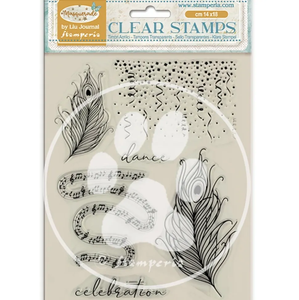 Set de sellos transparentes Plumas Masquerade Stamperia