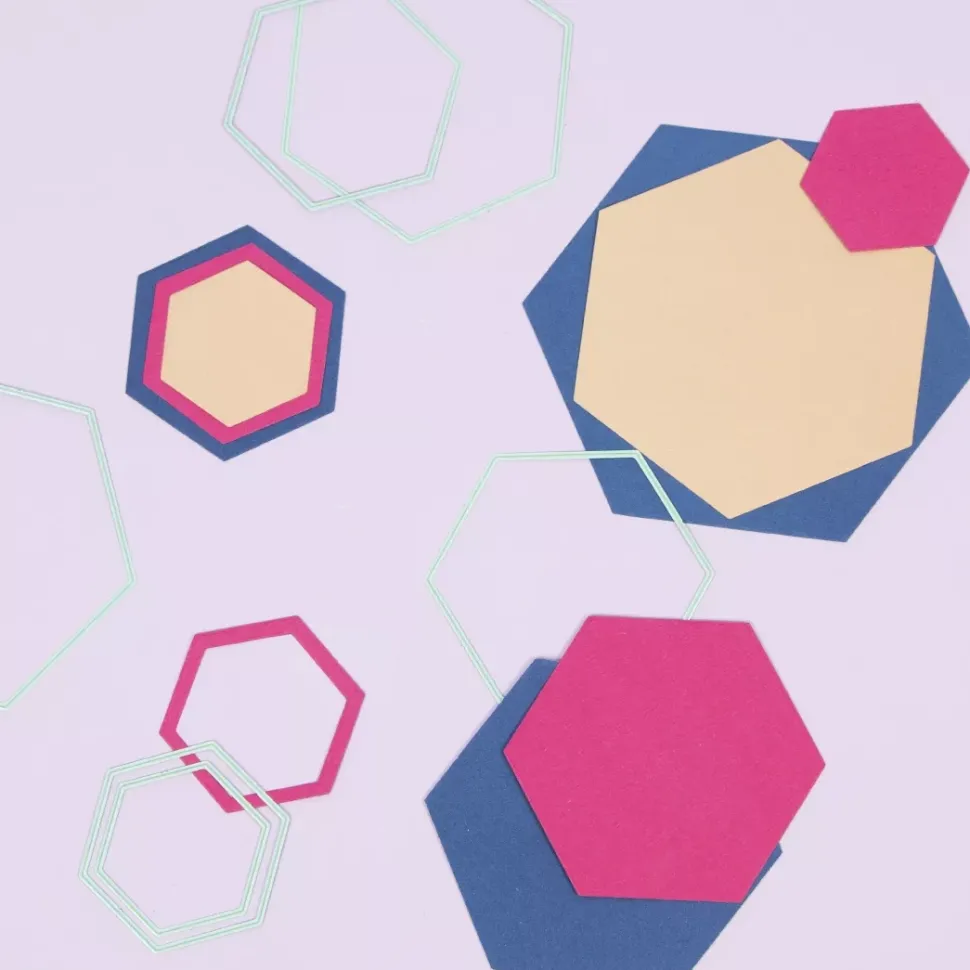 - Troqueles para realizar 12 hexágonos de tamaños diferentes.