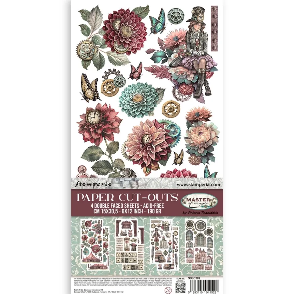 - Está repleto de temas y cientos de adornos precortados de la colección Master of Magic de Stamperia.