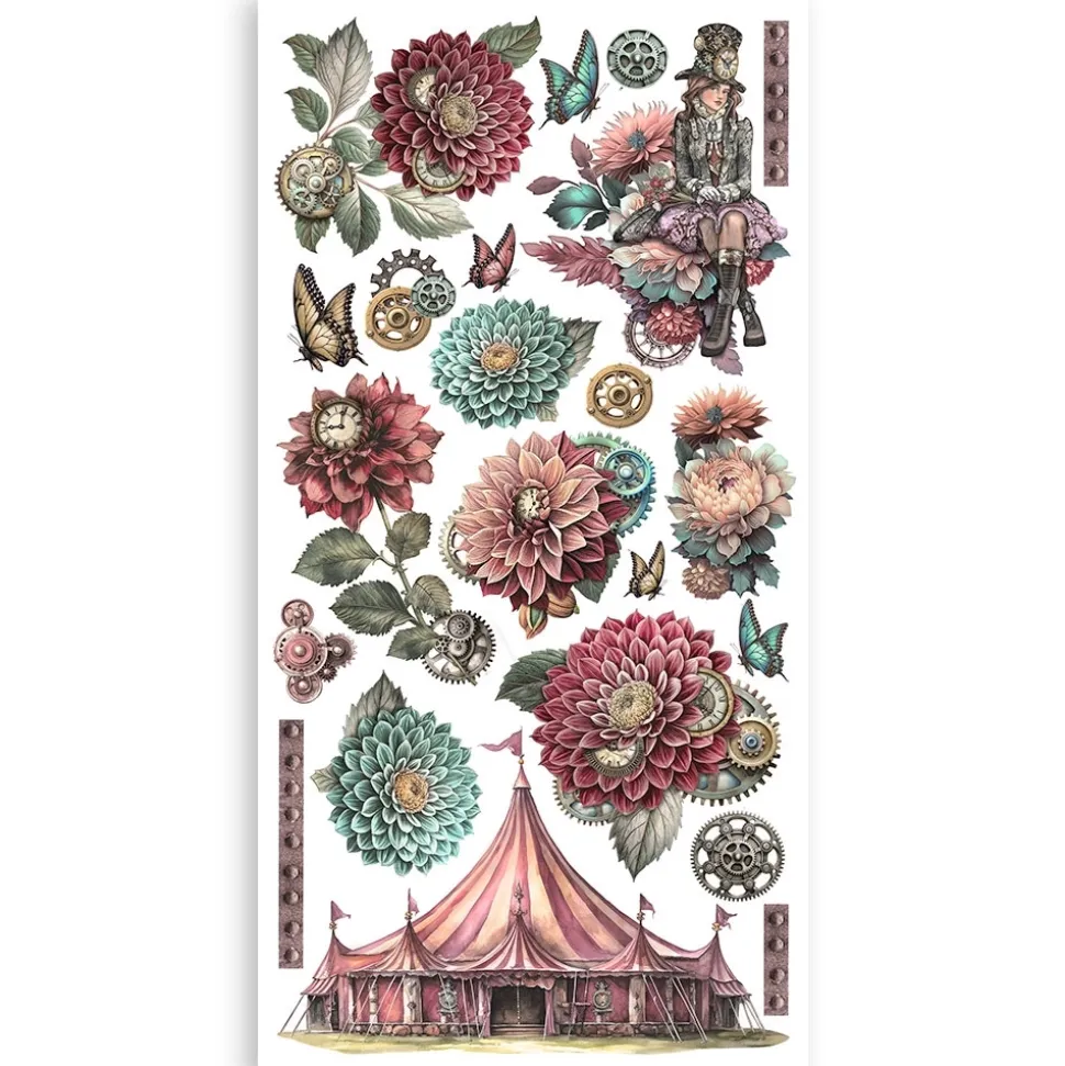 ¡Que empiece el espectáculo! Stamperia nos presenta su nueva colección, Master of Magic, creada por Antonis Tzanidakis. Se trata de un tributo al mundo de la magia y el circo, pero sin perder su esencia steampunk, En sus ilustraciones podemos ver a Mr. Vagabond en el papel de mago, así como cartas de póker, engranajes, flores, una carpa de circo y mucho más. La paleta de color contiene granates y turquesas, suavizados con esa pátina vintage característica de la marca. ¡No esperes más y descubre ya Master of Magic!