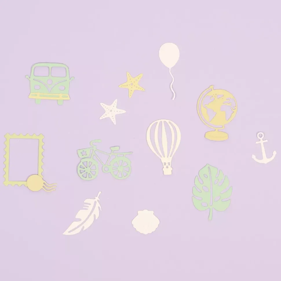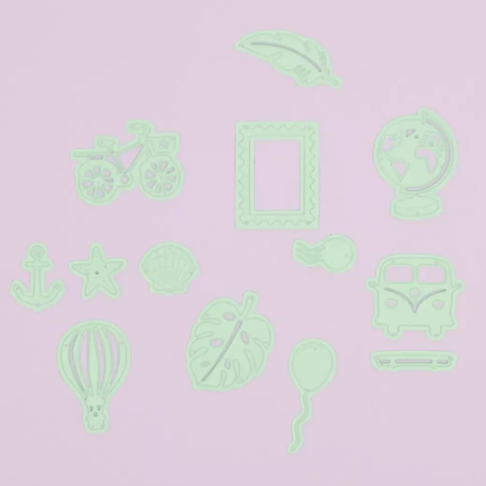 - Set de 9 diseños de mini troqueles, perfectos para diarios de viaje o planners.